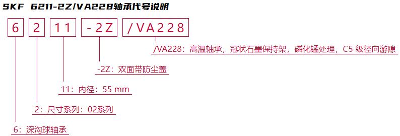 后綴列表:【-2Z:雙面帶防塵蓋】【/VA228:高溫軸承,冠狀石墨保持架,磷化錳處理,C5 級(jí)徑向游隙】。