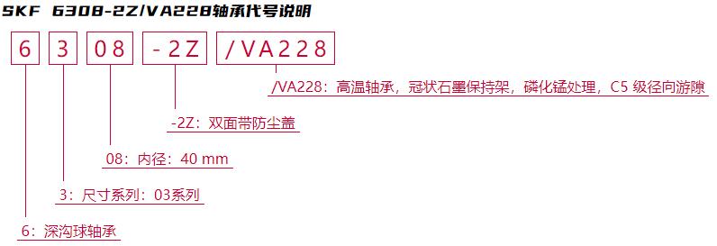 后綴列表:【-2Z:雙面帶防塵蓋】【/VA228:高溫軸承,冠狀石墨保持架,磷化錳處理,C5 級(jí)徑向游隙】。
