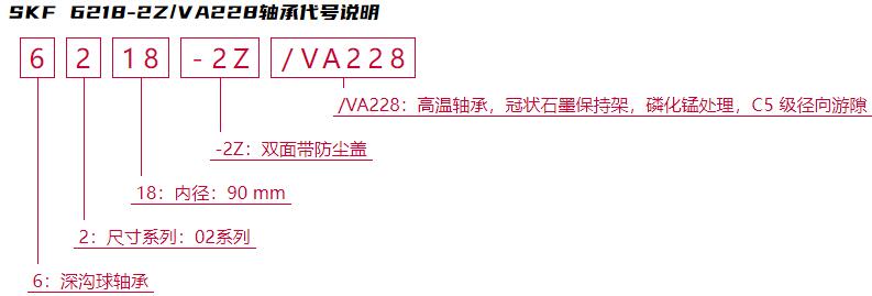 后綴列表:【-2Z:雙面帶防塵蓋】【/VA228:高溫軸承,冠狀石墨保持架,磷化錳處理,C5 級(jí)徑向游隙】。